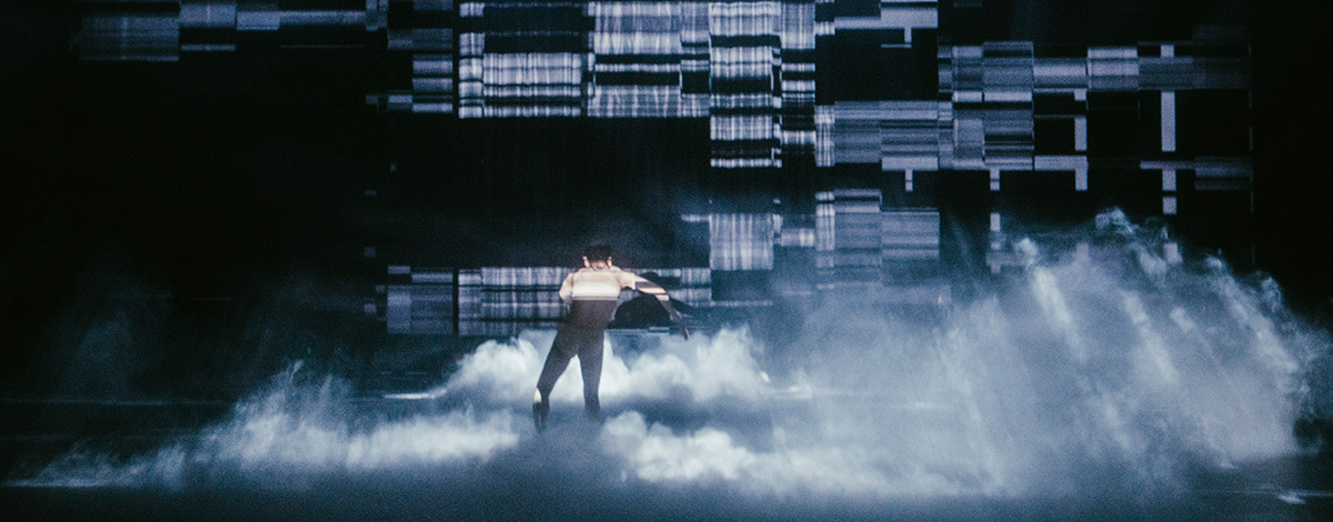 「舞蹈之美,就在於它可以不那麼具象,而只是去表達一種狀態。」部分段落加入送行往生者的意義動作,隱約鋪陳聯想。然整體而言,作品更訴求感官沉浸於環場,被舞動所欲傳達的指涉意象包覆,進入影像投影和音樂聲響營造與推進的數位情境,身心更加朝向舞作原名,「恍似生境的他方」。