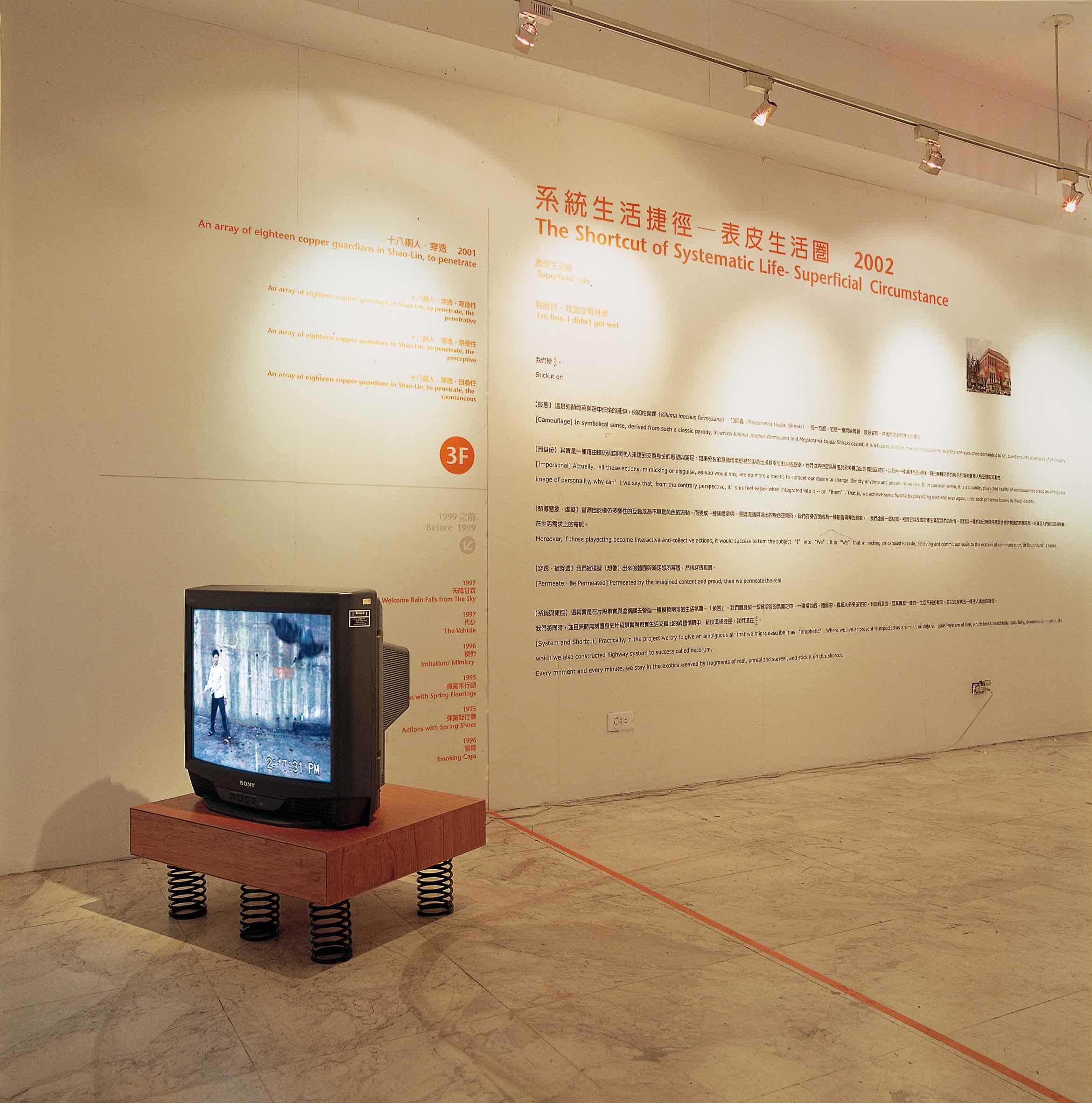 The Subject "The Shortcut of Systematic Life" was the spell in those images to call forth such many adaptive strategies we've worked for life and consciousness. Newly conducted collections "Superficial Circumstatnces," and "The 18 Copper Guards-Permeation" (five pieces overall) presented as the central part of the project. Both of them arranged side by side in the middle of site on the 3rd floor, the whole project effected an interesting contrast among images, documents, and installations, between concept and physical creation, and formed sort of contextual reference to the works on the 2nd floor.