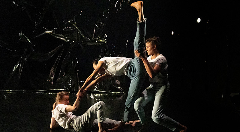 Burnt [the eternal long now] choreographically explores the collective, social phenomenon known as the burnout syndrome. With three dancers forming a metaphor for a small society, the dance makes use of the entanglement of the body and center of movement, as well as a constant change of hand gestures, touches, and dance movements to drive the body with force, and explore the sensitive and fragile mental state of human beings. Sound design and stage installations are used to reflect the inner worlds of the dancers, and immerse audiences in an exploration of the struggle and impact created by this state of mind. The dance is a direct gaze into our existence characterized by fierce competition in modern society, and addresses the subsequent effects resulting from individuals and groups being trapped in this lasting state of feeling burnout.