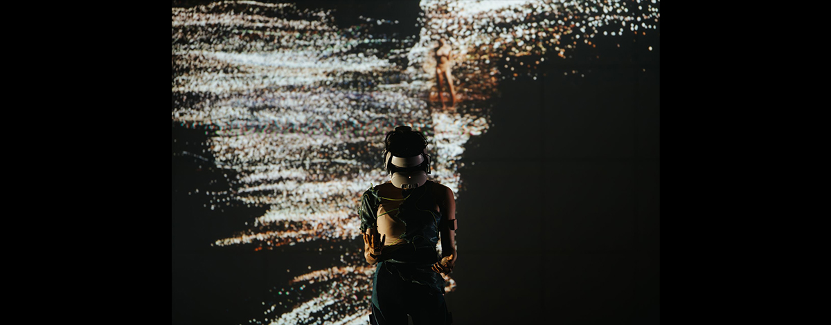 Beyond simply demonstrating how virtual reality serves as a means to explore memory and visions of the future, KINGDOM employs 3D digital space, images from VR headsets, and the shared space between audience and performers to transport everyone into a meticulously choreographed memory space characterized by a never-ending process of compression and decompression through shifting viewpoints and the design of a seemingly infinite stage, floating in a (private) digital kingdom that is constantly collapsing and being reconstructed. This work relies heavily on the performing team’s high level of coordination, with live sound and visual effects precisely synchronized with the performers’ onstage states. Meanwhile, performers wearing headsets need to enhance their sensory engagement to respond to live audiovisual cues. This exemplifies the fruit of their longstanding collaboration. (Commentator / CHEN Hsiang-Wen)