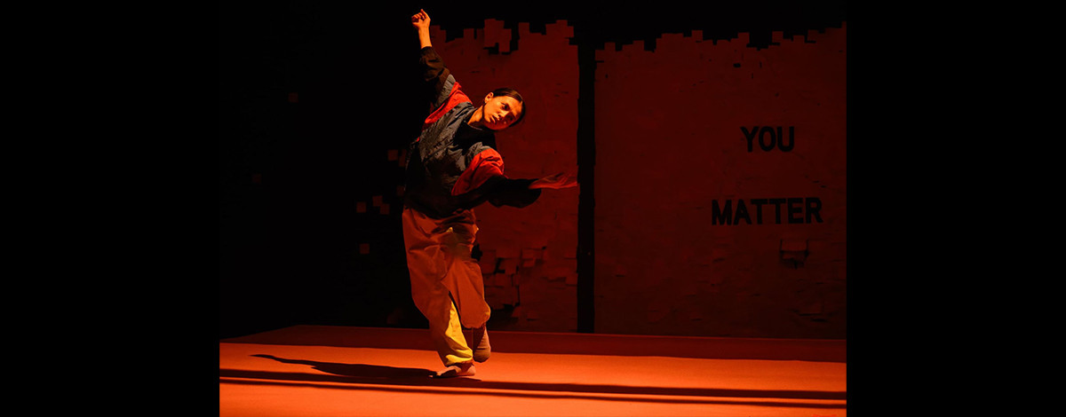 YANG Nai-Hsuan’s Worn Yet Unfolding, compared to the deconstructive, cool-toned approach that emphasizes the physical development of dancers, is rooted in personal life experiences and transformed into a warm, relatable work of empathy. The work focuses on the choreographer’s midlife anxieties and delves deeply into the physical and mental traumas from her youth as she developed her skills. Worn Yet Unfolding avoids self-pity and blame, instead converting the affective power of the dancing body into a critique of the field’s ecology, becoming a passionate embrace that is “worn yet unfolding” over time. The dancer moves repeatedly on and off stage, appearing to regress yet progress, with sound design shifting between near and distant, emphasizing the temporal aspect of being “worn yet unfolding”: without repeatedly bending, folding, falling, and wearing down, the light of warmth and strength may never shine through. (Commentator / FAN Xiang-Jun)