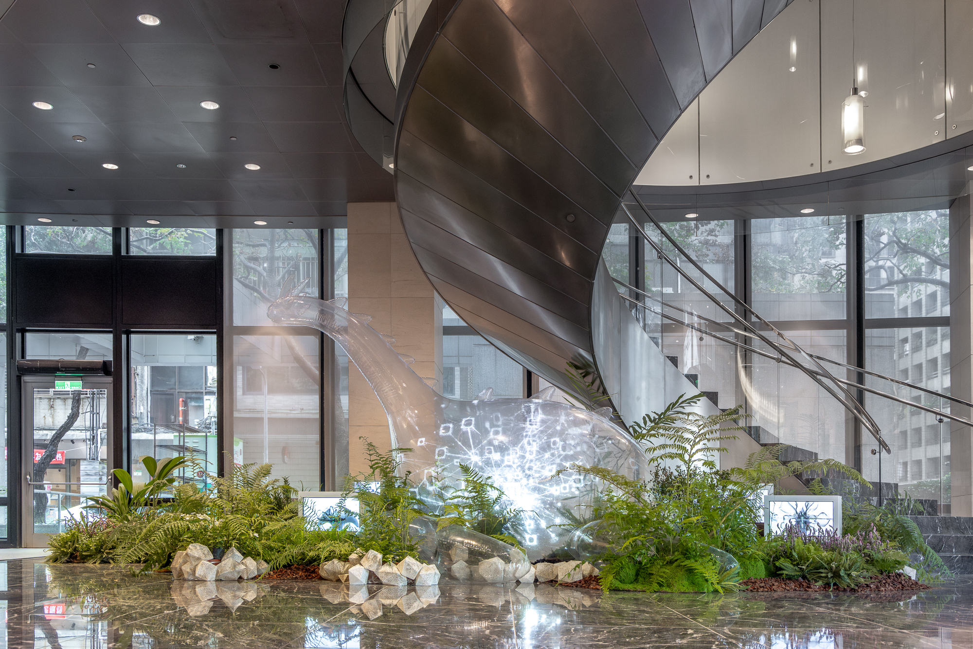 At the same time, this translucent giant echoes Taiwan’s role as an “ecological refuge ark” during the glacial period—a living island that allowed life to persist amid drastic climate changes. Consequently, the transparent plesiosaur does not aim to reconstruct history but to propose a way to envision the future: if the island is seen as a living entity and habitats are not static, life can be loaded, moved, and replanted, then island ecology can continue to evolve and grow into a new form.