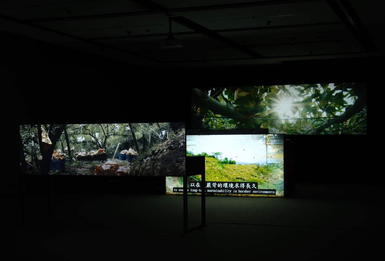 | Hensan Pear Trees & Hosui Pears—Chen Liang-Hsuan Solo Exhibition/ CHEN Liang-Hsuan | The exhibition delves into the production processes and history of Taiwan’s grafted pears, allowing the audience to understand the delicate and complex agricultural grafting techniques illustrated by the orchard’s micro-histories while showcasing video art's aesthetic skills and expressiveness. CHEN Liang-Hsuan affectively edits the nuanced changes of light and shadow over time, showcasing the vibrancy of nature and embracing the captivating qualities of video as a medium. The narrative, use of sound, and forms of projection or imaging are intricately woven together. The thoughtful design of interface materials, dimensions, and height variations enables the work to integrate or shift between chapters smoothly. This approach provides diverse expressions and interrelations of the video content, leading to an overflowing sense of poetry. (Commentator: SUN Ping) |