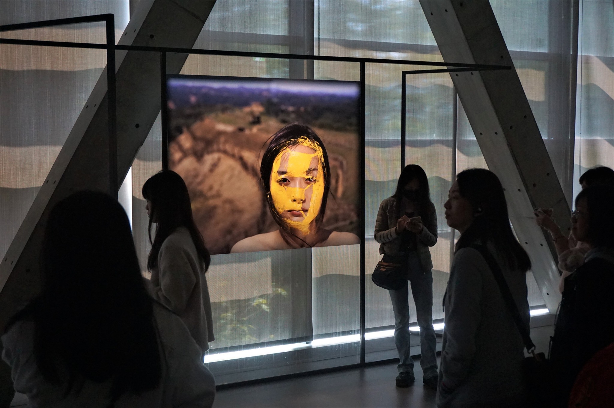 在三角形的特殊展間內,空間的壓迫感與延伸感交織,讓觀展體驗與在一般方正的畫廊完全不同。走在 V 字型交會的走廊,視線時而開闊、時而收窄,每轉一個彎都有種探索未知的驚喜感。